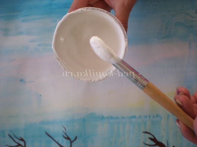 Наводимо гуаш до консистенції рідкої сметани. Набираємо багато фарби на пензель.