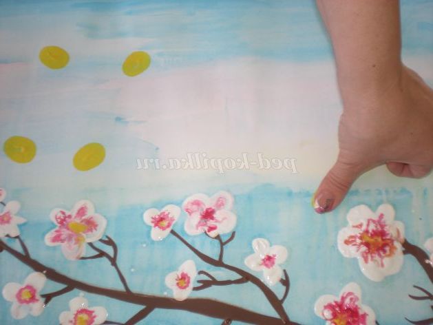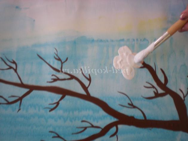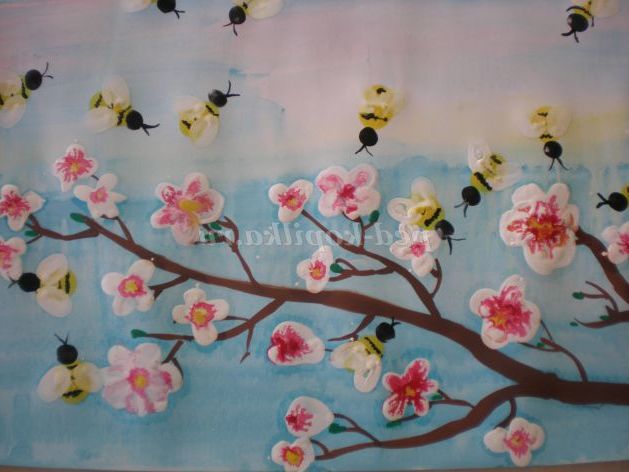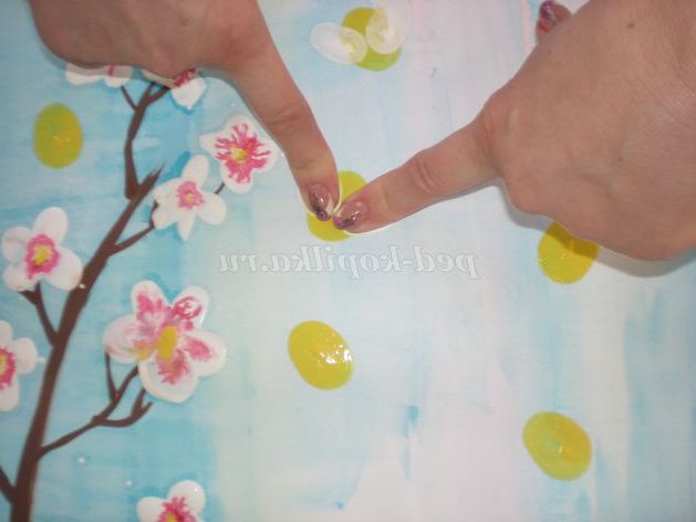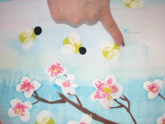 Нетрадиційні техніки малювання. Майстер-клас. Малювання пальчиками бджіл, малювання квітів по мокрому шару.