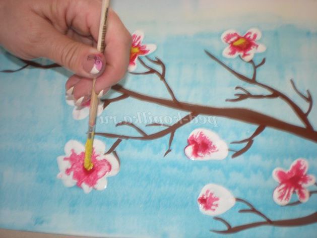 Починаємо малювати квіти, рясно наносячи фарбу на папір.