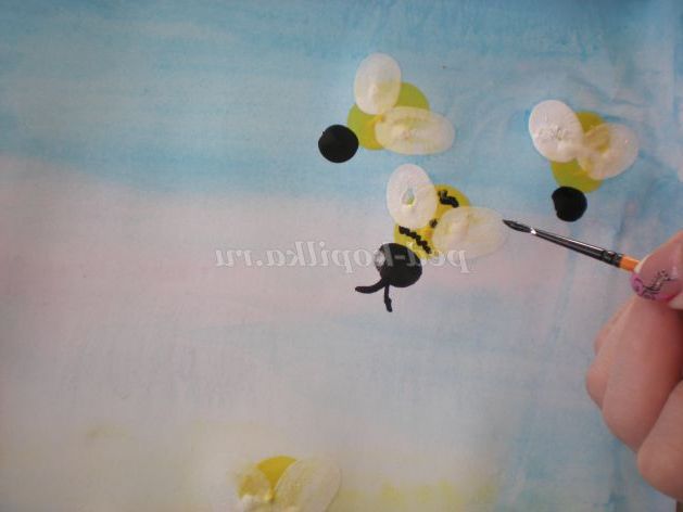Залишилося намалювати головки бджолам. Їх будемо малювати мізинцем.