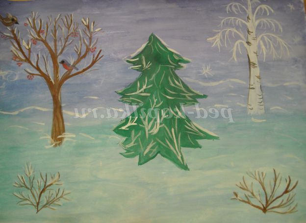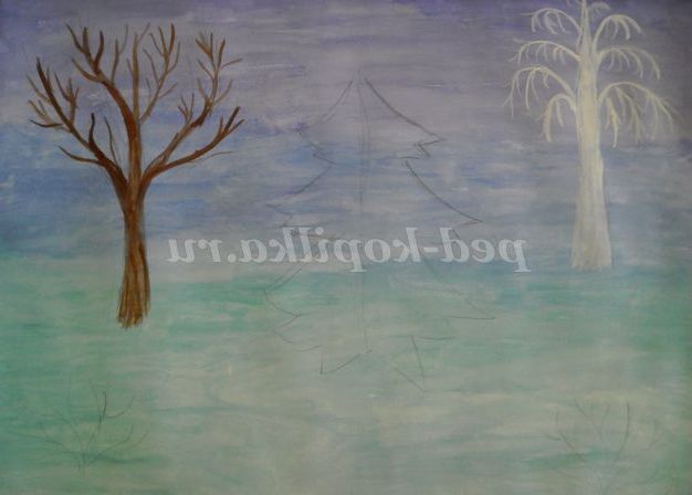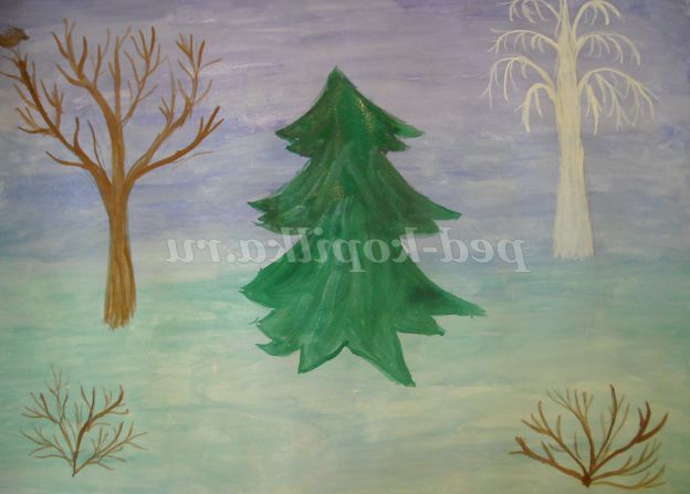 Зимовим морозним ранком у лісі, прикрашені інеєм, стоять дерева. Гілочки ніби мереживні, «повітря легкий і чистий». Ми, жителі великого південного міста, зимовою красою можемо помилуватися в парку, тому по можливості заняття проводимо на природі, виходимо в парк, спостерігаємо за життям рослин, тварин, птахів. Після екскурсій намагаємося замалювати побачене. Хотілося б передати красу зимового парку.