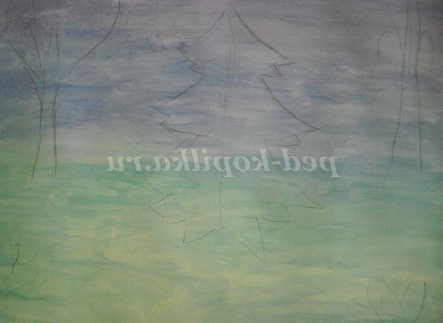 4. Розфарбовуємо дерева, тонким пензликом вимальовуємо гілочки.