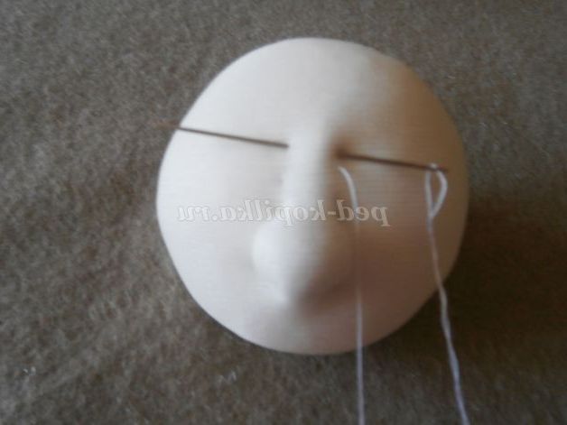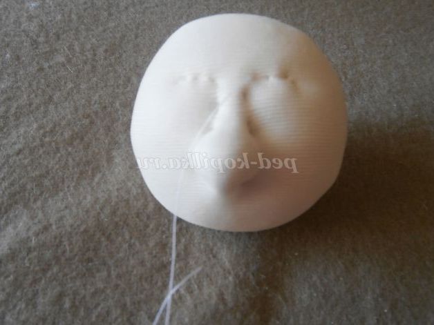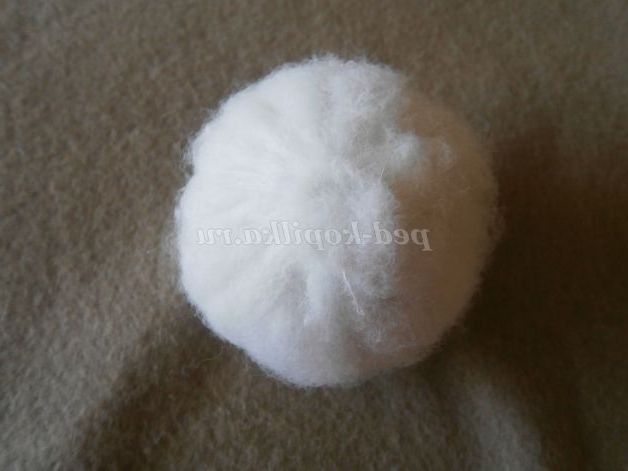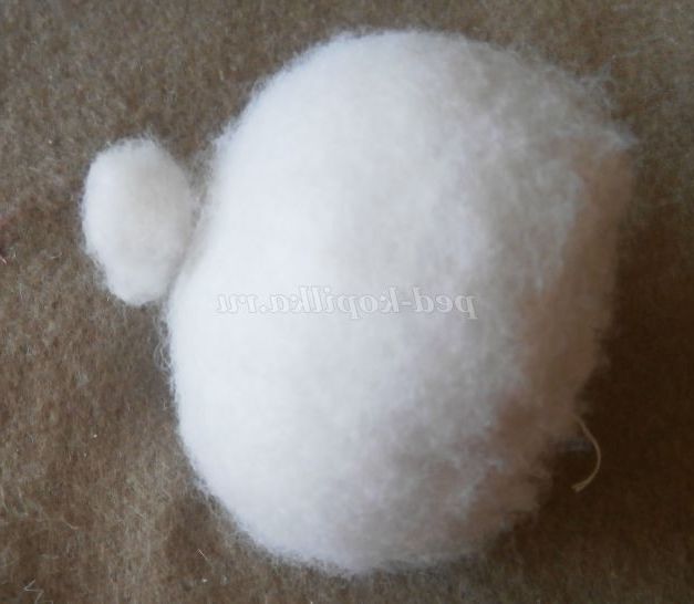 З того ж синтепону скачуємо маленький кульку і клеїмо на заготівлю, це буде носик