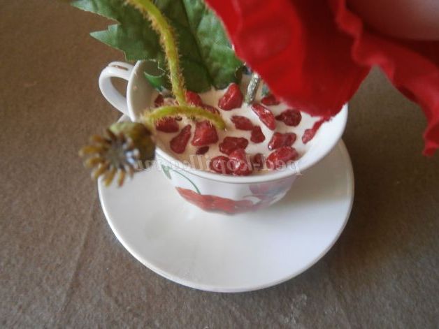 Квіти з мордочками поміщаємо в кухоль і заливаємо алебастром або гіпсом