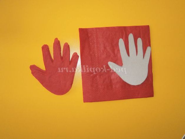 Далі на білому картоні вимальовуємо дитячу ручку і вирізаємо її