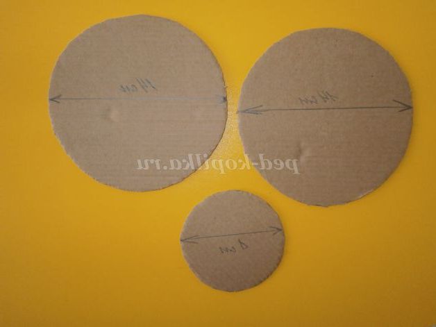 Для їх створення потрібно на щільному картоні намалювати три кола, два з яких діаметром 14см, а один-8см і вирізати