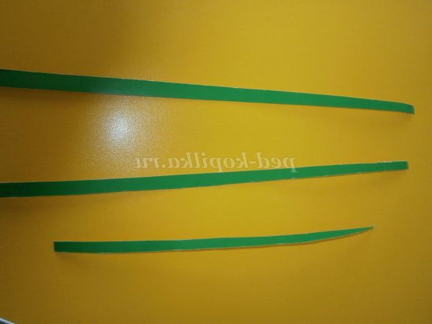 Із зеленого картону вирізаємо три смужки-стеблинки