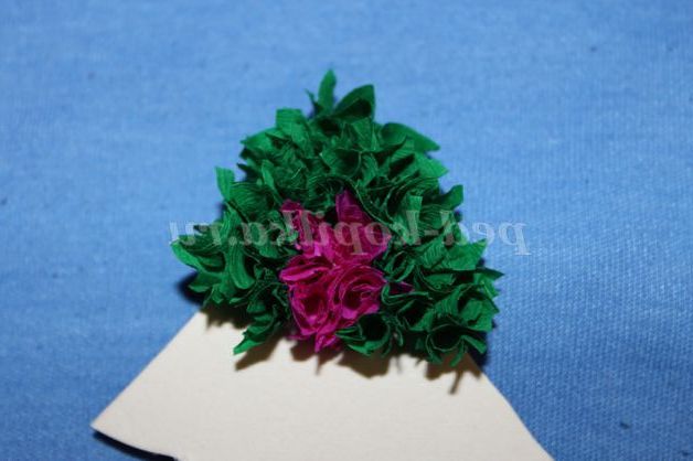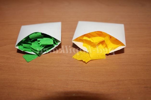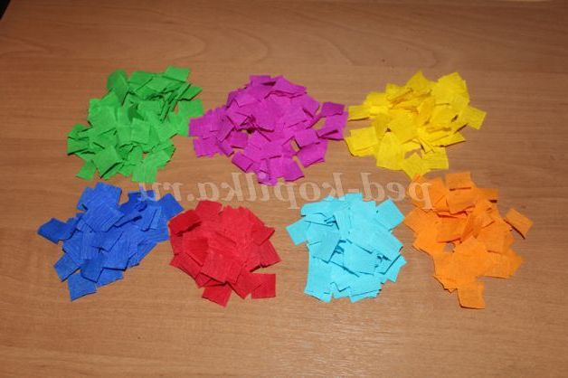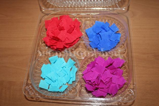 Отримані квадратики паперу розкладаємо по квітам в коробочки
