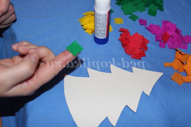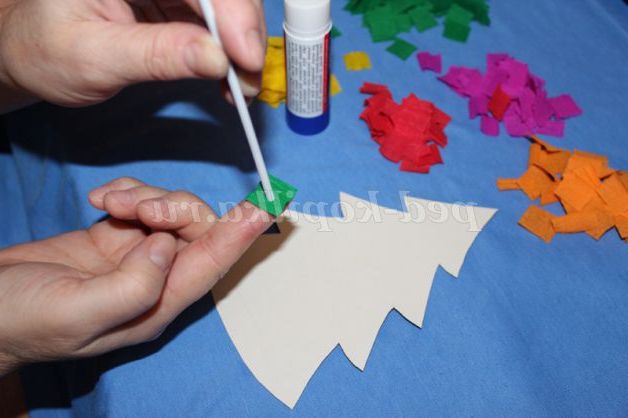 7. Кольорові вставочки на зеленому тлі - прикраси нашої ялинки.