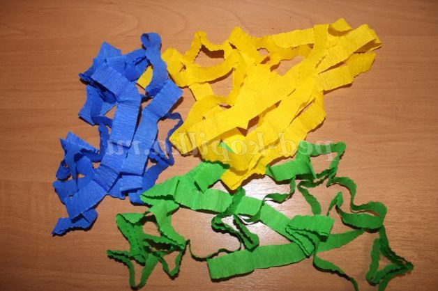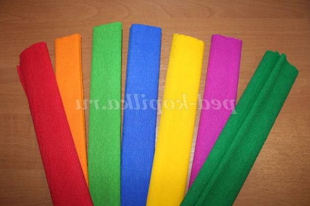 Папір нам знадобиться гофрована (її ще можуть називати креповой). Така папір продається в будь-яких магазинах канцелярських товарів. Нам потрібні будуть рулони різних кольорів.