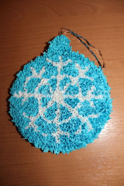 А ось і ще одна іграшка - блакитний куля зі сніжинкою - йому теж знайдеться місце на ялинці.