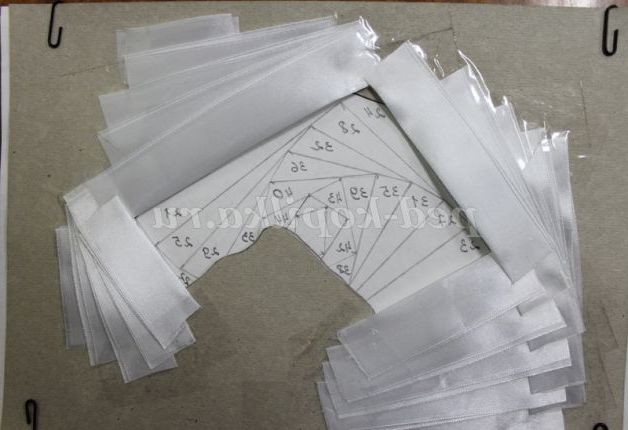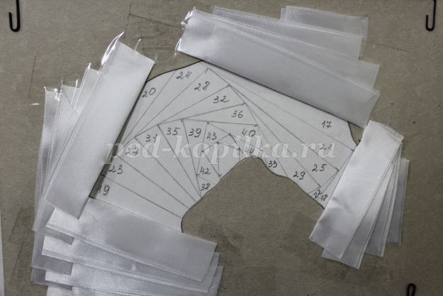 12. Складаємо його навпіл. Ширина складеної стрічки повинна бути трохи більше, ніж крок на айріс шаблоні.