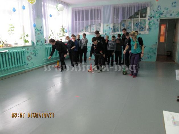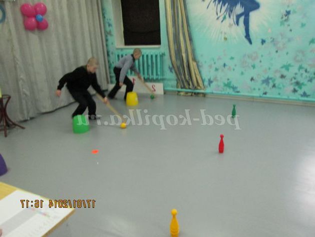 Перший учасник веде "ключкою" кульку між кеглями змійкою до конуса і назад передає наступному і так до останнього гравця.
