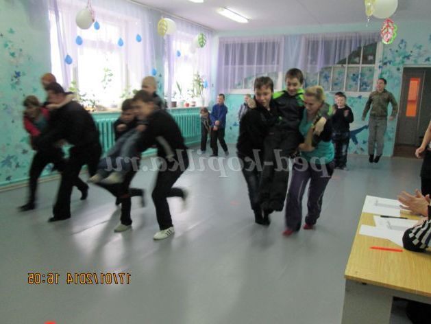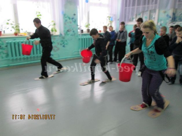 За сигналом перші учасники «одягають лижі» (лижі зроблені з картону) і рухаються вперед. Оббігають стійку, повертаються назад і передають лижі наступному гравцеві. Перемагає команда першою виконала завдання.