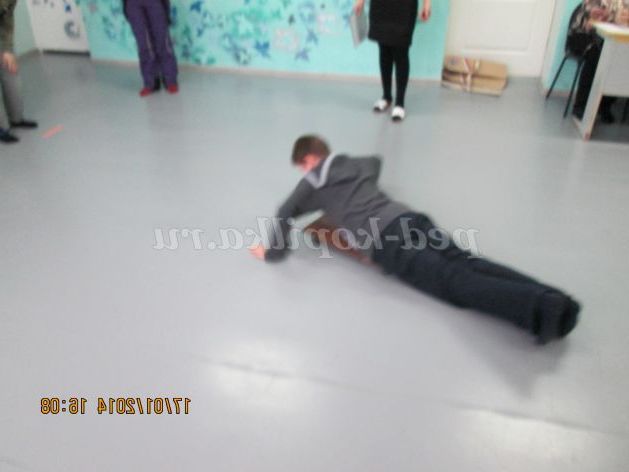 За сигналом перші учасники лягають на «сани» (дерев'яні дошки на коліщатках) і, відштовхуючись руками від землі, рухаються вперед , об'їжджаючи стійку. Доїхавши до останньої стійки, встають і переворачиваюся і ложаться знову і назад. Перемагає команда першою виконала завдання.