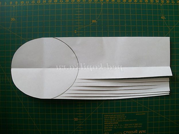 3.Развернуть лист і намалювати дугу, щоб вона була симетрична краю правої сторони аркуша ( повинен вийти овал).