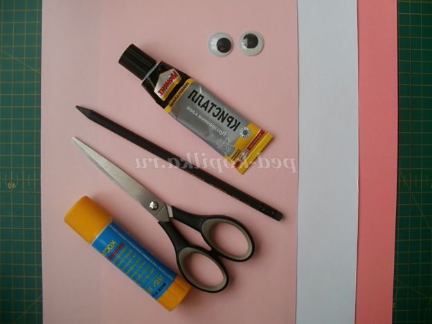 Для роботи необхідно: кольоровий папір, ножиці, клей момент, склеювальний олівець, простий олівець, лінійка, оченята.