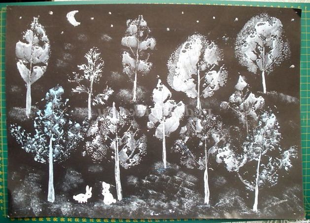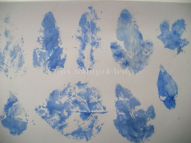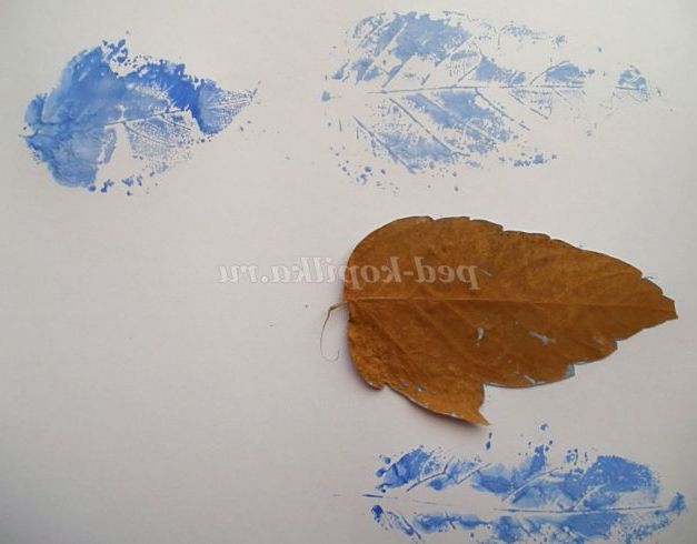 Використовуючи техніку «друк» листям, можна виконати багато робіт різної тематики, видозмінювати залежно від віку дітей та ступеня їх підготовки.