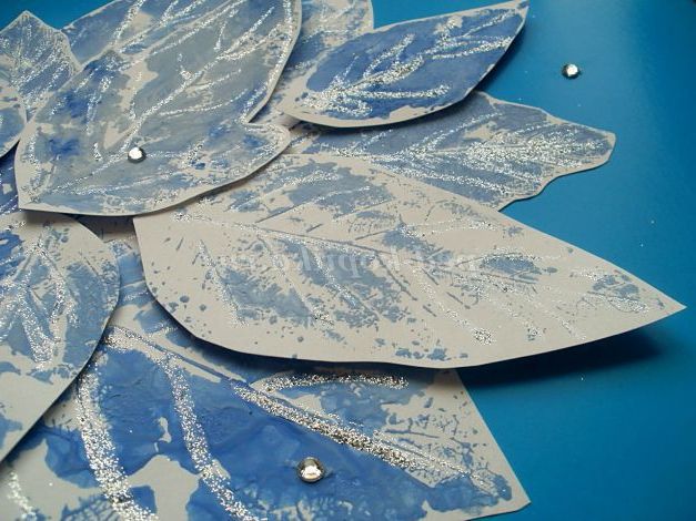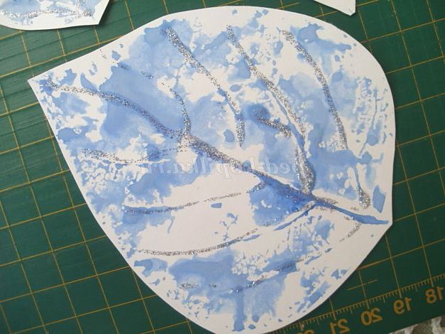 4.коли листя пов'яне, вирізати їх по контуру, намалювати прожилки листків гелем з блискітками.