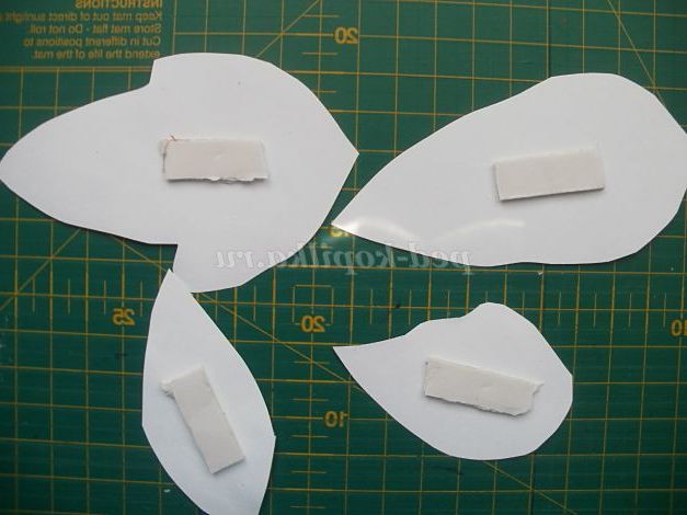 7.Наклеить листя, розташовуючи їх, щоб вийшов букет. Частина листя, щоб додати об'єм, наклеїти на спінений двосторонній скотч.
