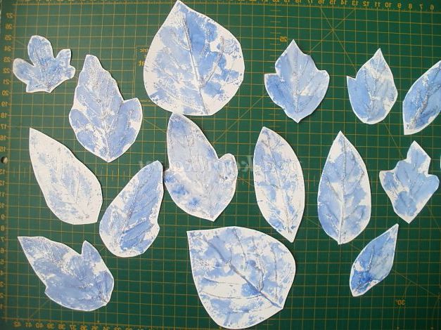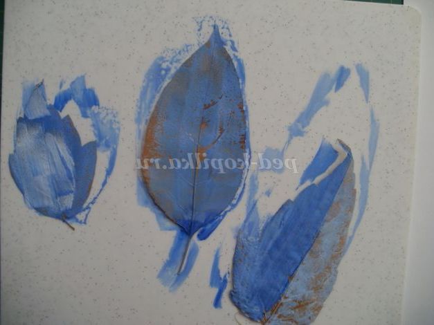 3.Затем обережно зняти лист з поверхні листа. Робимо відбитки всіх листя композиції