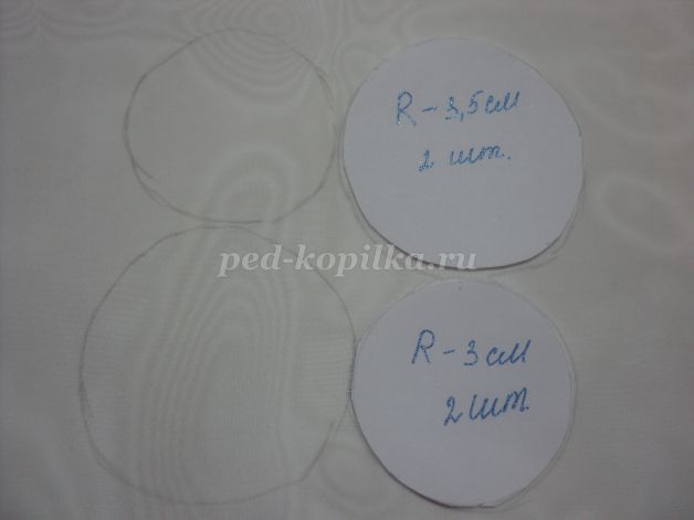 На тканини білого кольору розкладаємо і обводимо по 2 рази шаблони радіусом 3,5 см; 3 див.