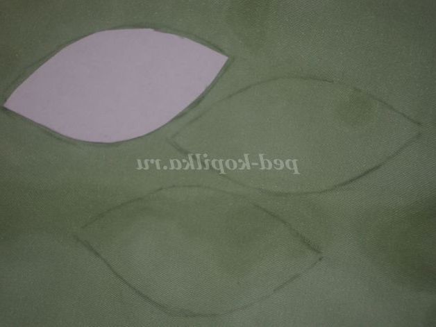 На тканини зеленого кольору обведіть шаблон для листя (всього 3 деталі).