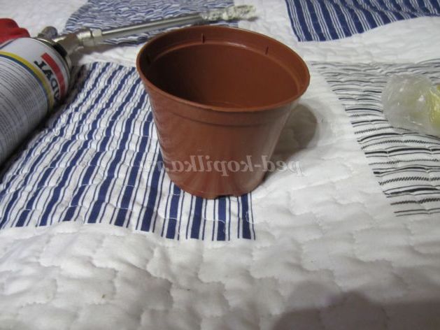 4. Встромляємо в нього задекоровану корч, попередньо промазав її клеєм