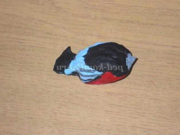 Розмальовуємо чорною гуашшю пташку.