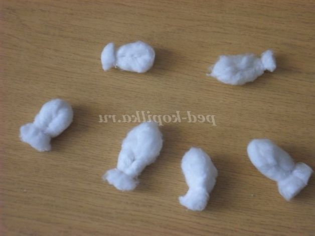 Потім беремо шматочок вати для виготовлення птиці.