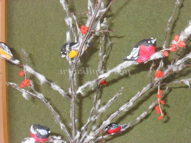 Опис матеріалу: Пропоную вам саморобку на конкурс «Зимова фантазія». Назва вироби «Птахи на дереві».