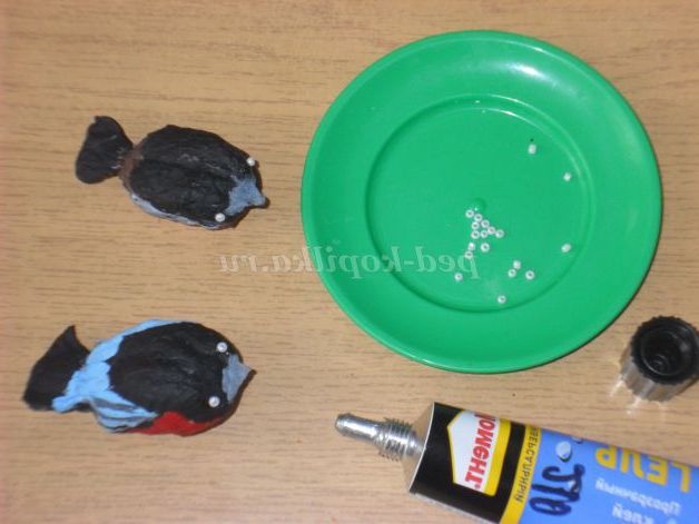 Змащуємо пташку клеєм ПВА і чекаємо коли висохне.
