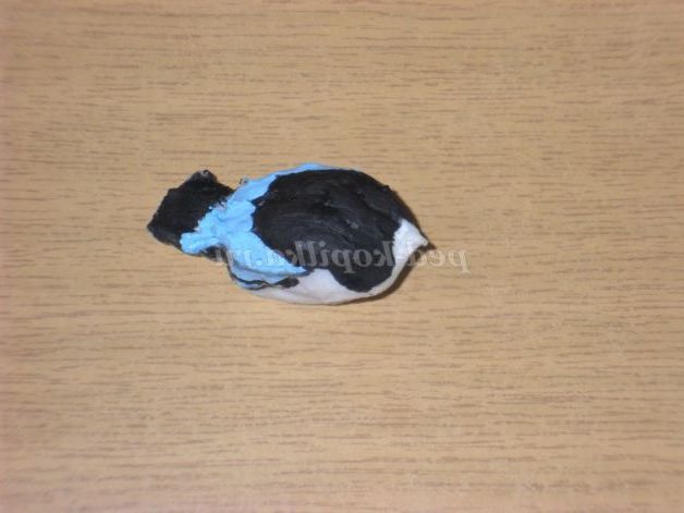 Розмальовуємо блакитний гуашшю пташку.