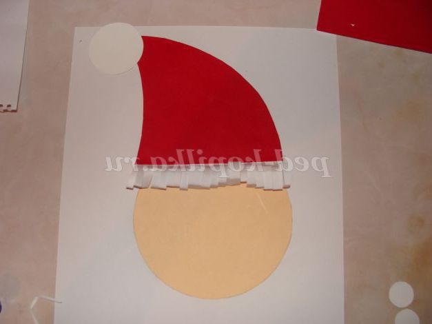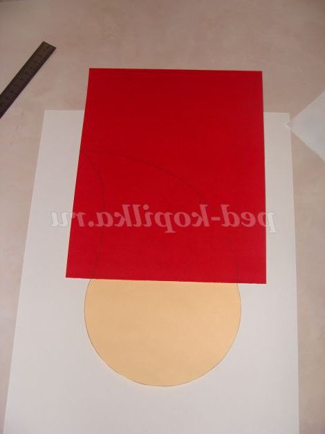 Прикладіть лист червоної кольорового паперу до "голови" і намалюйте шапочку.