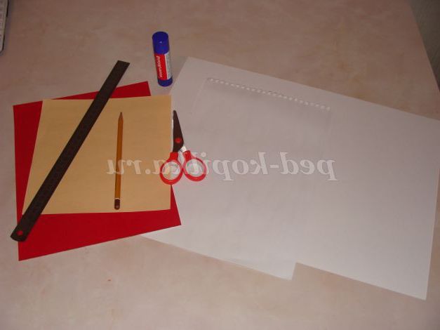 З бежевої паперу виріжте ніс, з червоної рот.