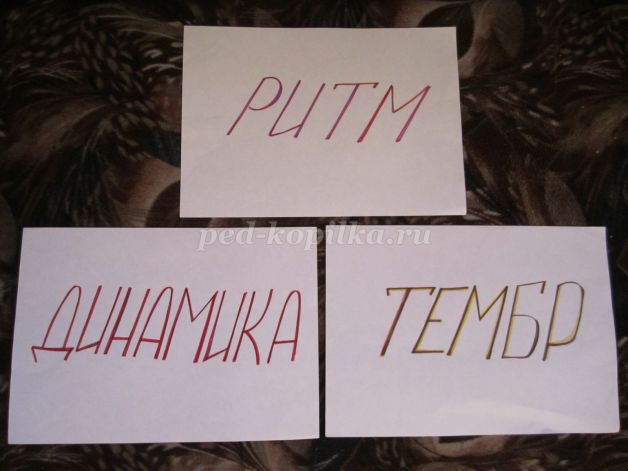 1. Знайомство з музичними термінами «ритм», «динаміка», «тембр»;