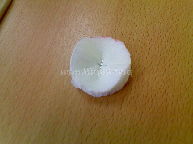 17. Починаємо збирати гвоздику, піднімаємо до угорі кожен шар серветки і проминаем її.