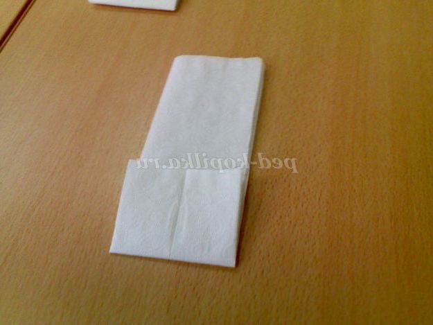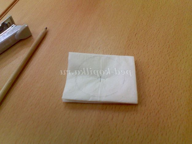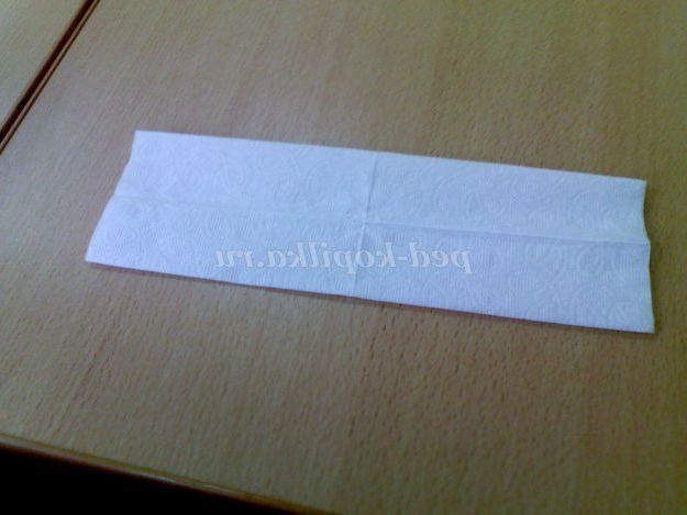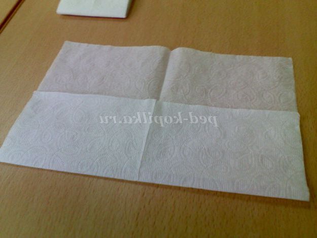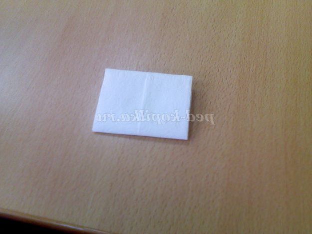 10.Дальше приступаємо до виготовлення гвоздик. Беремо серветку, розгортаємо її і складаємо три рази.