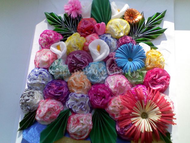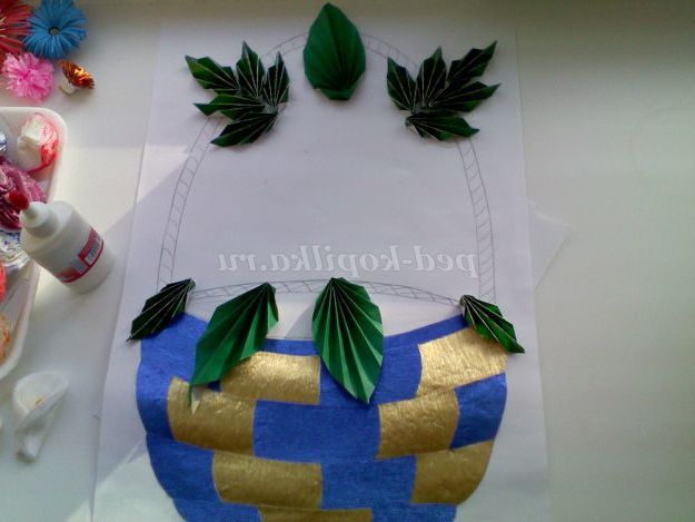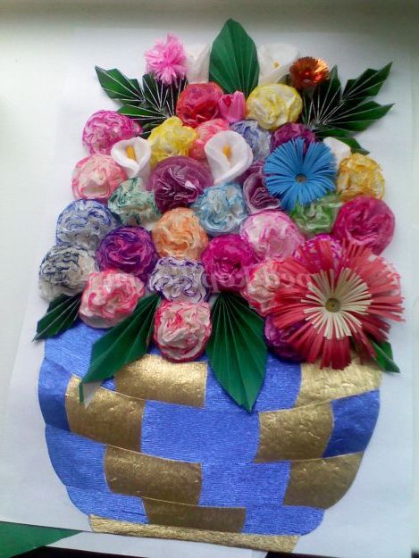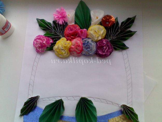 27. Коли квіти готові починаємо приклеювати їх у довільній формі на нашу кошик.