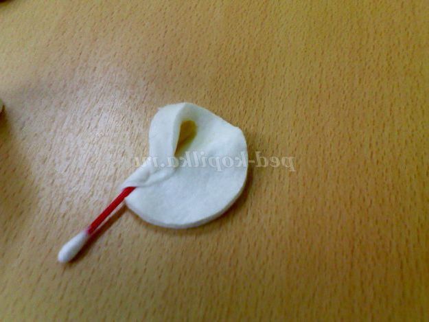 24. Далі беремо ватний диск. В центр диска кладемо нашу підсохлу серединку.