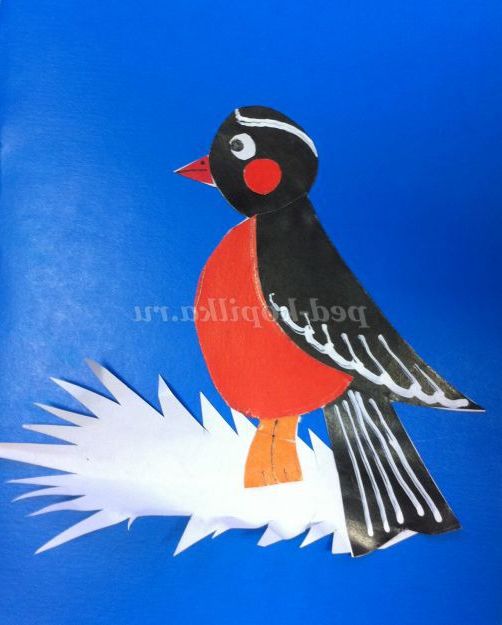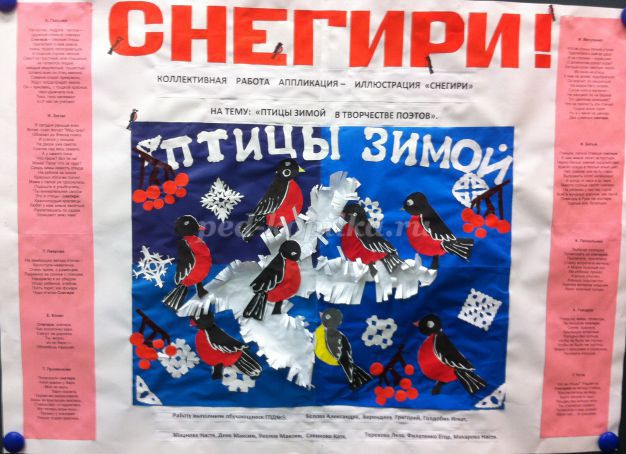 Колективна робота аплікація-ілюстрація «Снігурі» на тему: «Птахи взимку у творчості поетів».