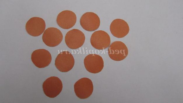 Приклеюємо кружечки до гілочок, вийшла горобинка. Приклеюємо або малюємо око.