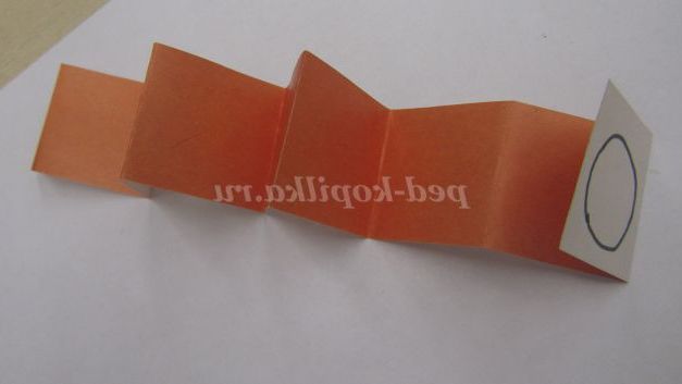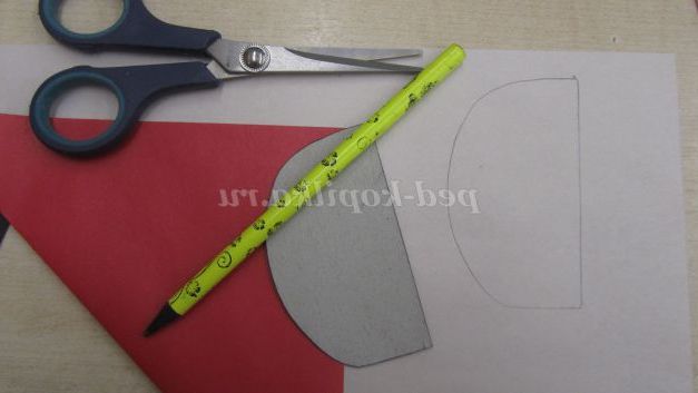 Складаємо гармошкою смужку червоного кольору, малюємо гурток, вирізаємо.