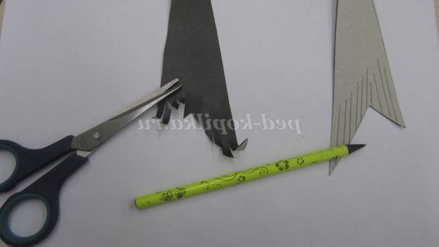 На хвості креслимо лінії, вирізаємо і трошки загинаємо.