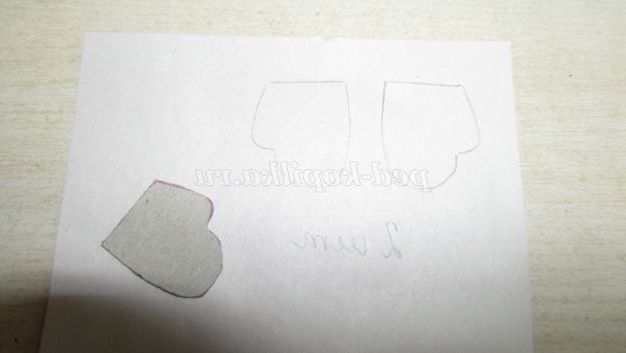 Беремо червоний колір паперу і вирізаємо рукавички.