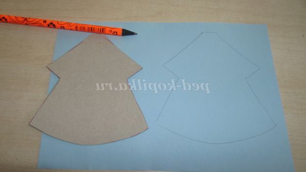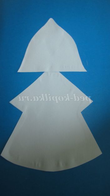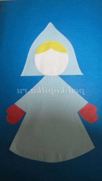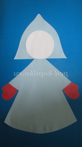 З блакитного паперу для ксерокса за шаблоном обводимо і вирізаємо шубку для снігуроньки.