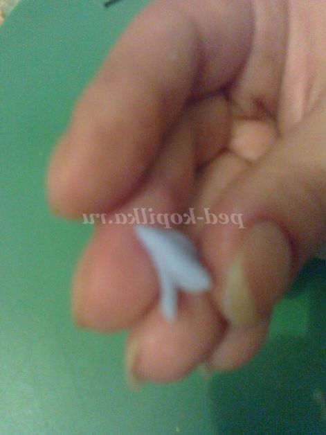 Беремо зовсім невелику грудочку, розміром з горошинку і розгортаємо його на долоні.