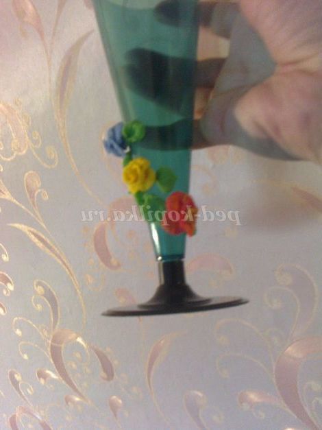 Пропоную ще один варіант використання кольорів. Проста одноразовий посуд, перетвориться в ексклюзивну вазочку для квітів. У цьому варіанті я використовувала суперклей "Момент".