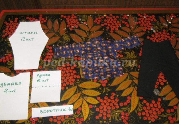 Фото №1: Для роботи приготувати ножиці, дві зубочистки, непотрібний папір, туалетний папір, скотч, клей шпалерний або ПВА, фарба акрилова для ґрунтовки, фарба тілесного кольору, тканина для штанів і для сорочок різних забарвлень, штучні волосся двох кольорів