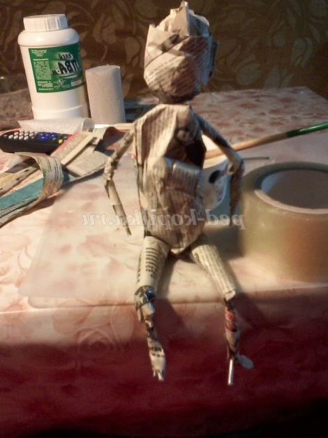 6: Всю фігуру ретельно обклеїти, додаючи для округлості тіла шматочки туалетного паперу.